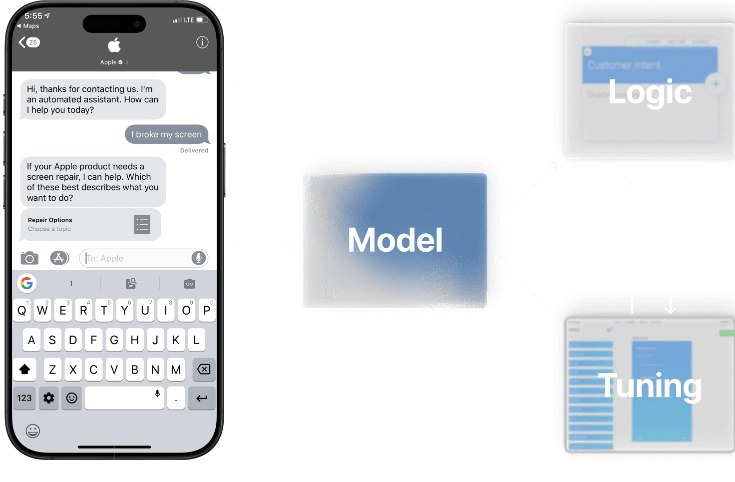 Enter ConversationKit: I lead the product and design from 0-1 and from 1-2 of a tool that allowed non-technical service team members to build out conversational interfaces for Apple's customer sales and support globally. My platform made it easy to train a base LLM with custom intents, collect contextual data from user responses, interact with API's within a conversation and build out rich media messages and interactions across multiple chat channels (starting with iMessage) while integrating seamlessly with the Apple ecosystem. The platform saved Apple millions in customer support costs in the first year and serves hundreds of millions of Apple customers globally 8 years later.